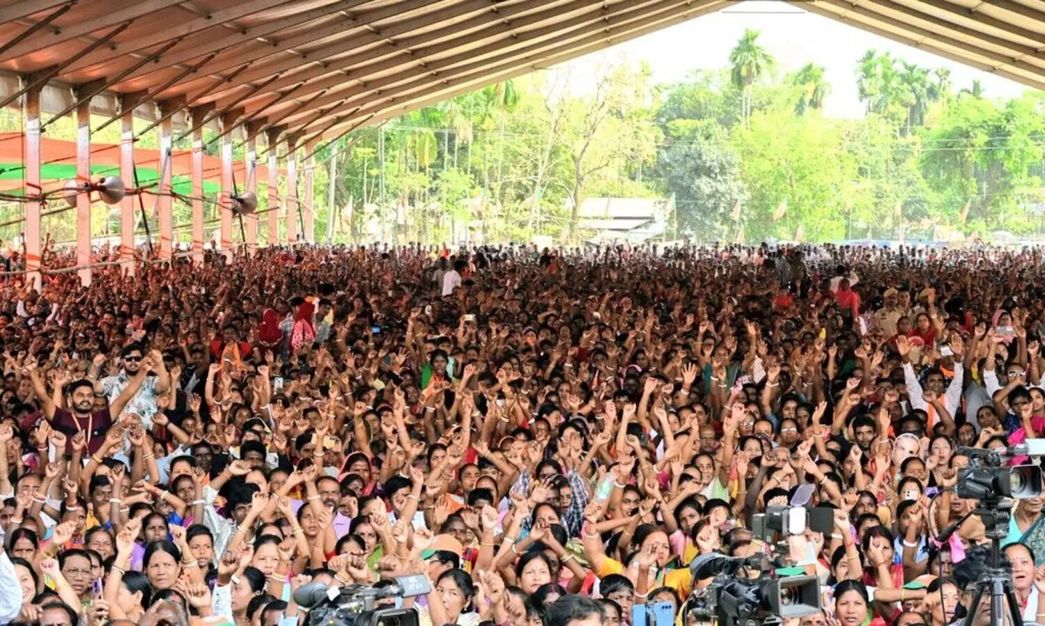Voters attend a campaign rally in Lakhipur. (Photo:@NitinNabin/X)