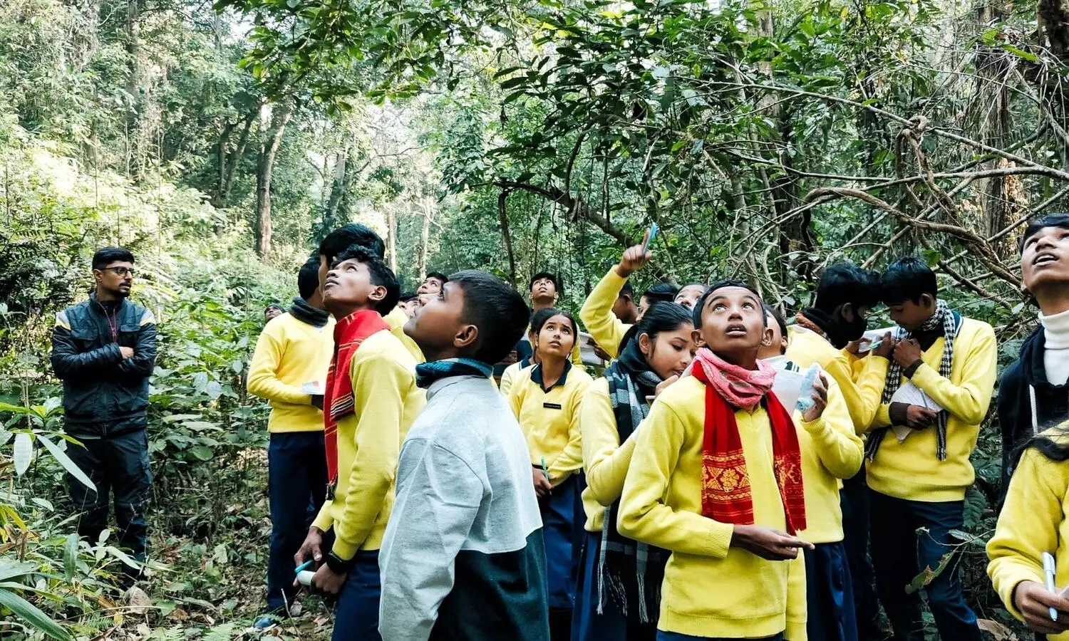 Students participating in the immersive nature trail at the Hollongapar Gibbon Sanctuary (AT Image)