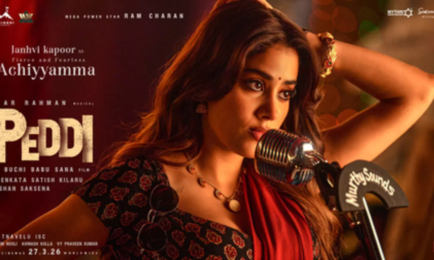 On Saturday, the makers, through the film's official handle Peddi, shared the first look poster of Janhvi Kapoor and wrote, "Our #Peddi's love with a firebrand attitude. Presenting the gorgeous #JanhviKapoor as #Achiyyamma. #PEDDI GLOBAL RELEASE ON 27th MARCH, 2026."
